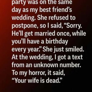 My wife’s 37th birthday party was on the same day as my best friend’s wedding. She refused to postpone, so I said, “Sorry. He’ll get married once,…